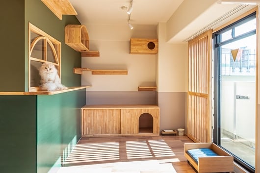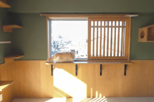 猫がリラックスできる専用スペースやベッドを設けましょう。私たちはこれらの考慮は大前提とし、猫も飼い主さんも嬉しい工夫を長年、リノベーションに取り入れてきました。